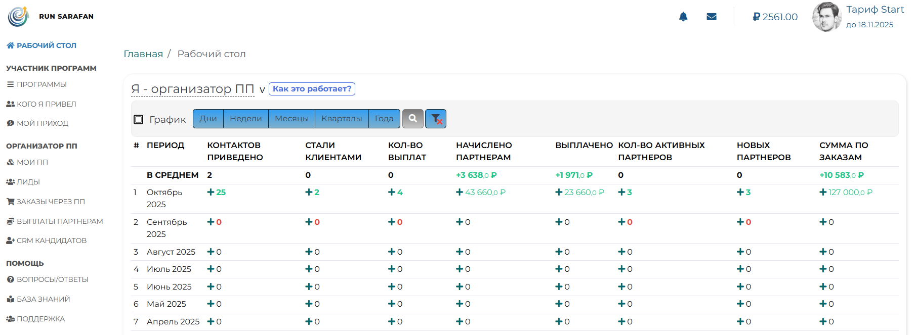 - Сумма по заказам клиентов, привлеченных в рамках ваших ПП.